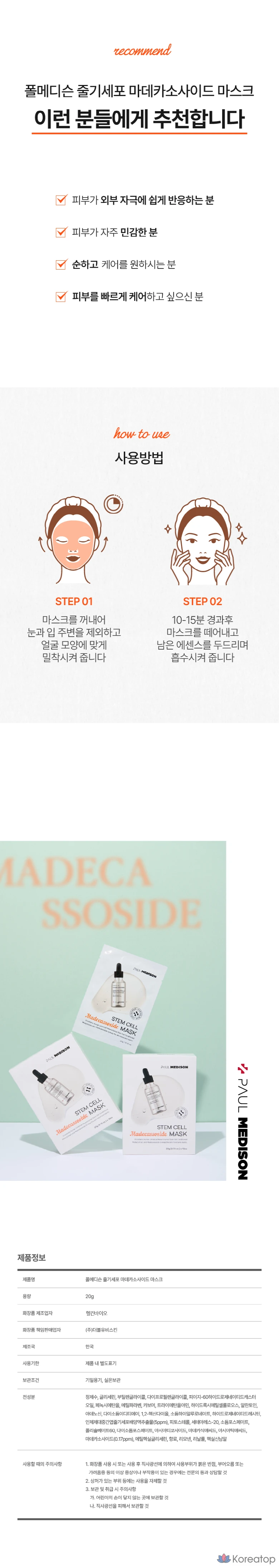 Маска PAUL MEDISON Stem Cell Madecassoside, 10 штук, 1 упаковка