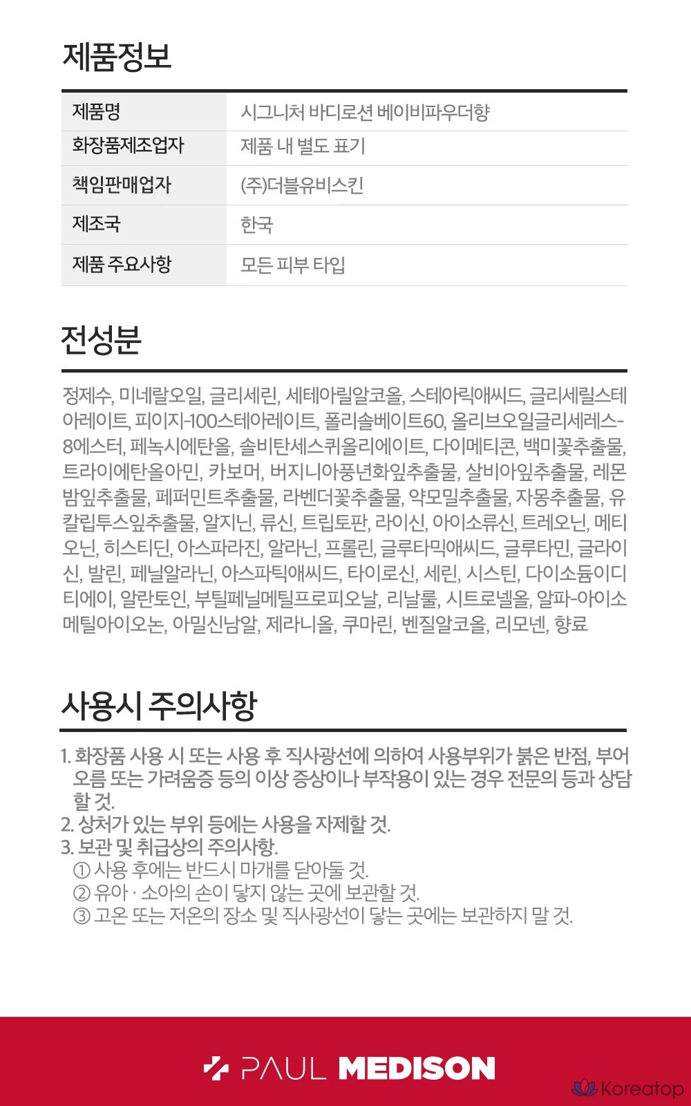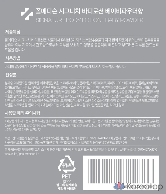 Парфюмерный лосьон для тела PAUL MEDISON Signature с ароматом детской присыпки, 1,077 л, 1 шт.