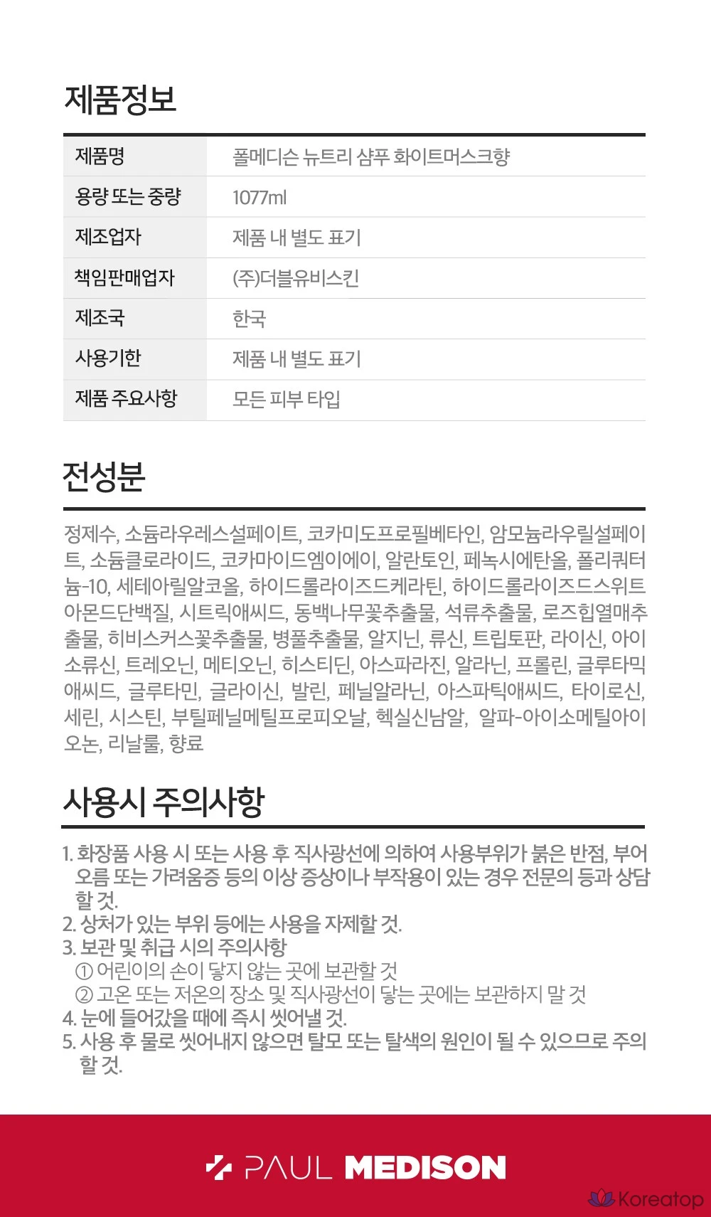 Шампунь PAUL MEDISON Nutri с ароматом белого мускуса, 600 мл, 1 шт.