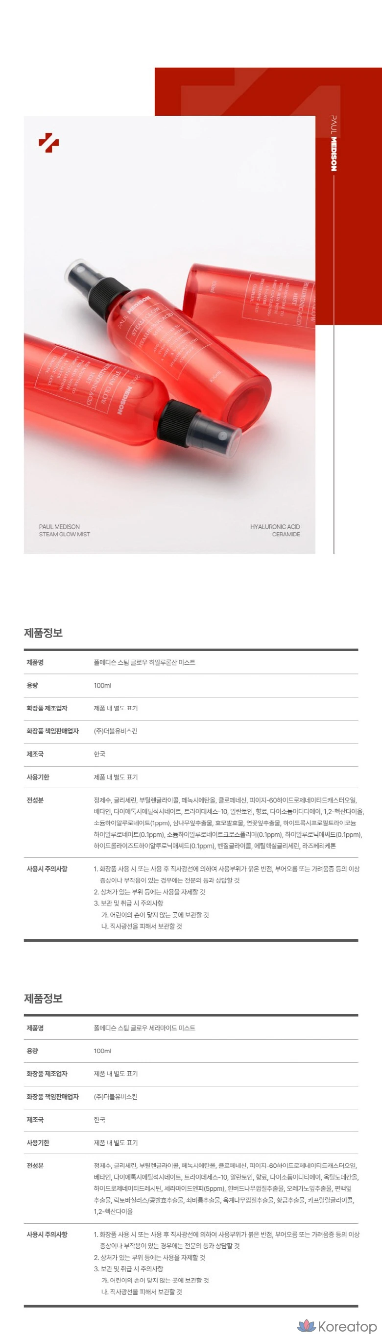 Спрей для лица PAUL MEDISON Steam Glow Ceramide Mist, 1 шт., 100 мл