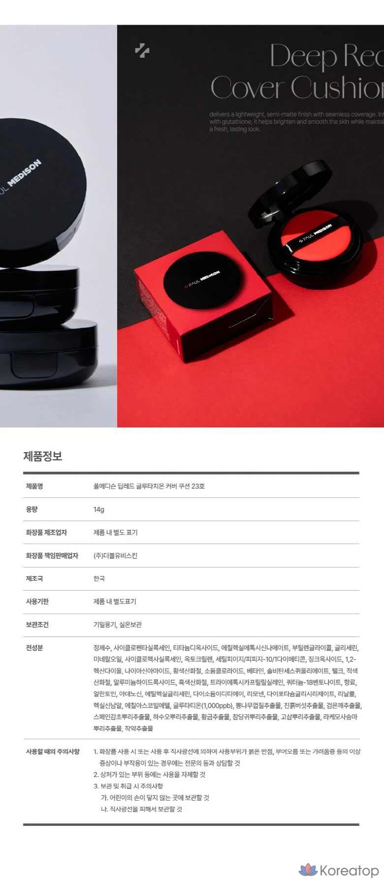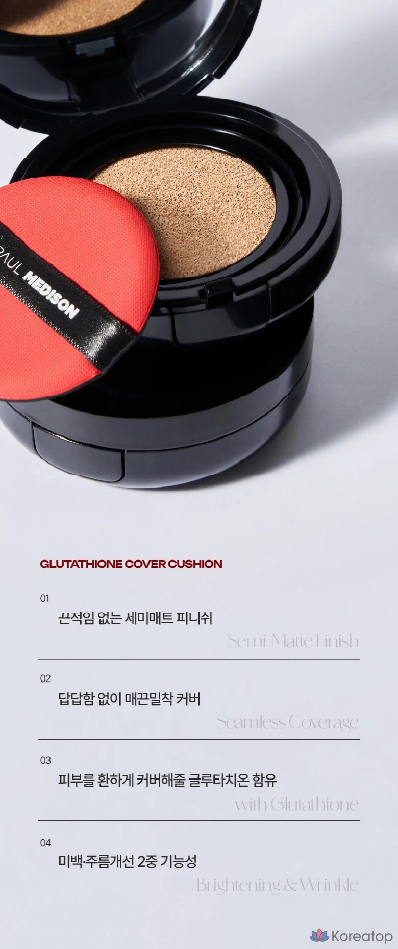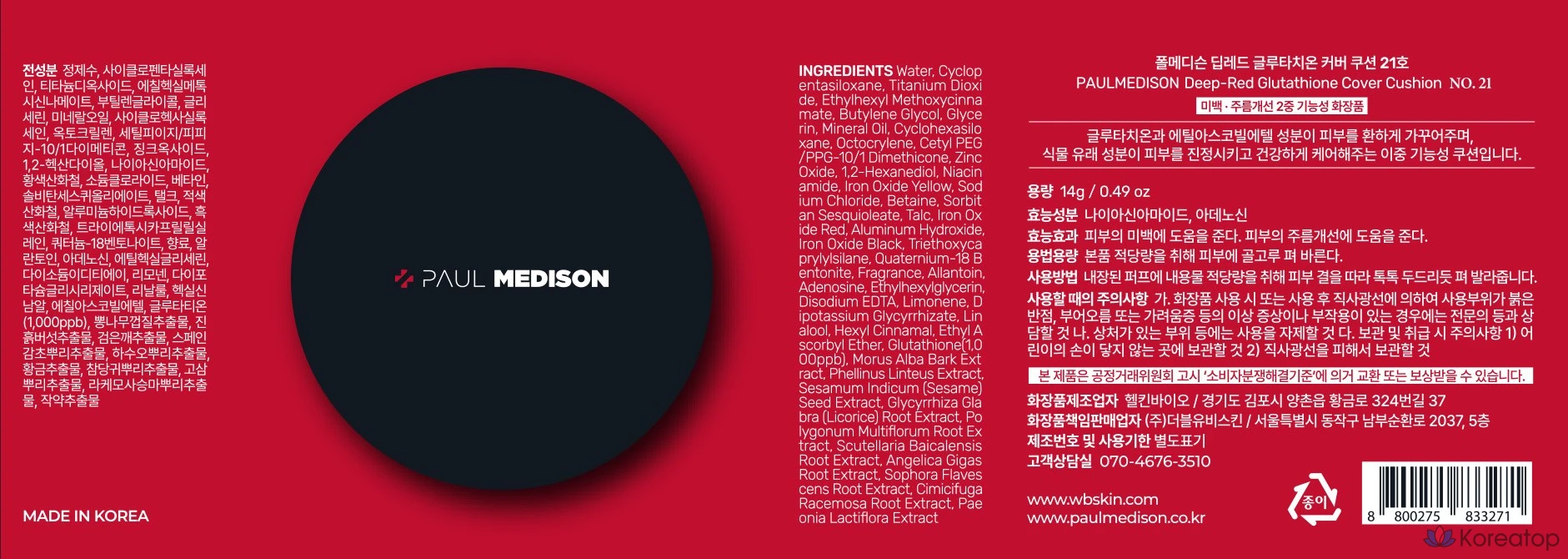 Тональный крем-кушон PAUL MEDISON Deep Red Glutathione Cover Cushion Foundation, 14 г, № 21, 1 шт.