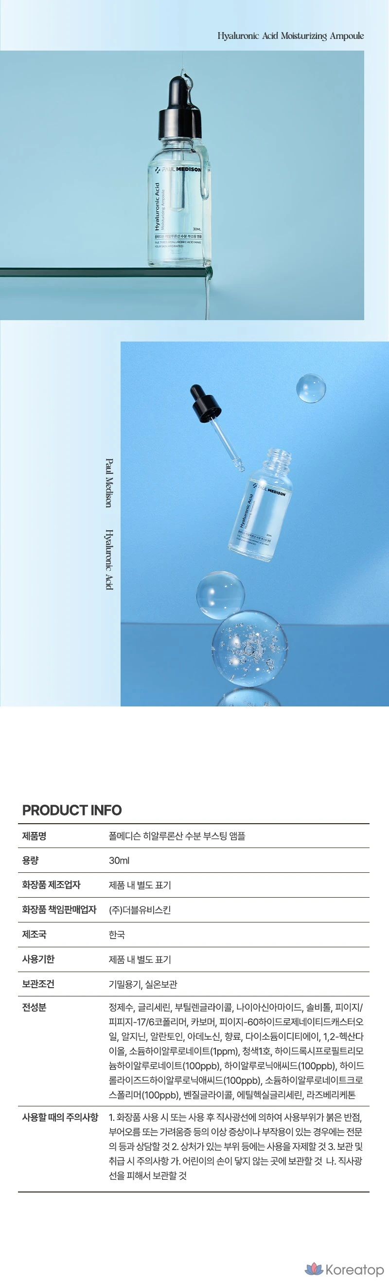Увлажняющая ампула с гиалуроновой кислотой PAUL MEDISON, 1 шт., 30 мл