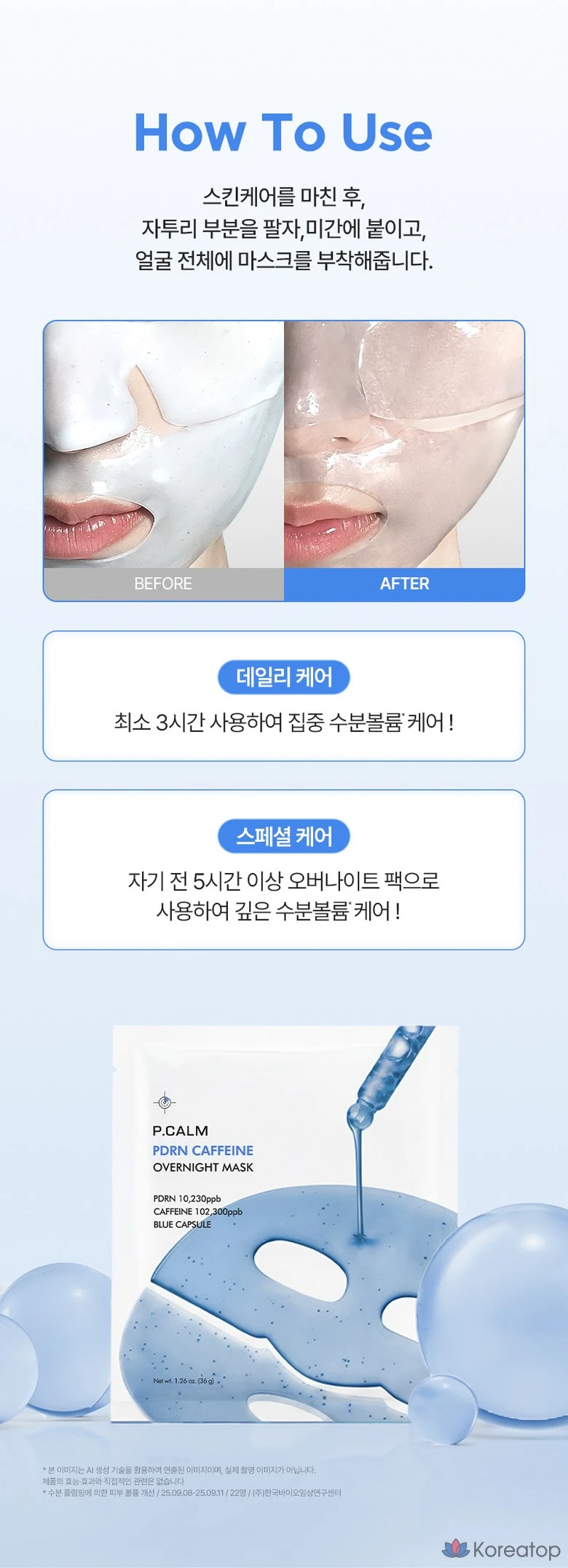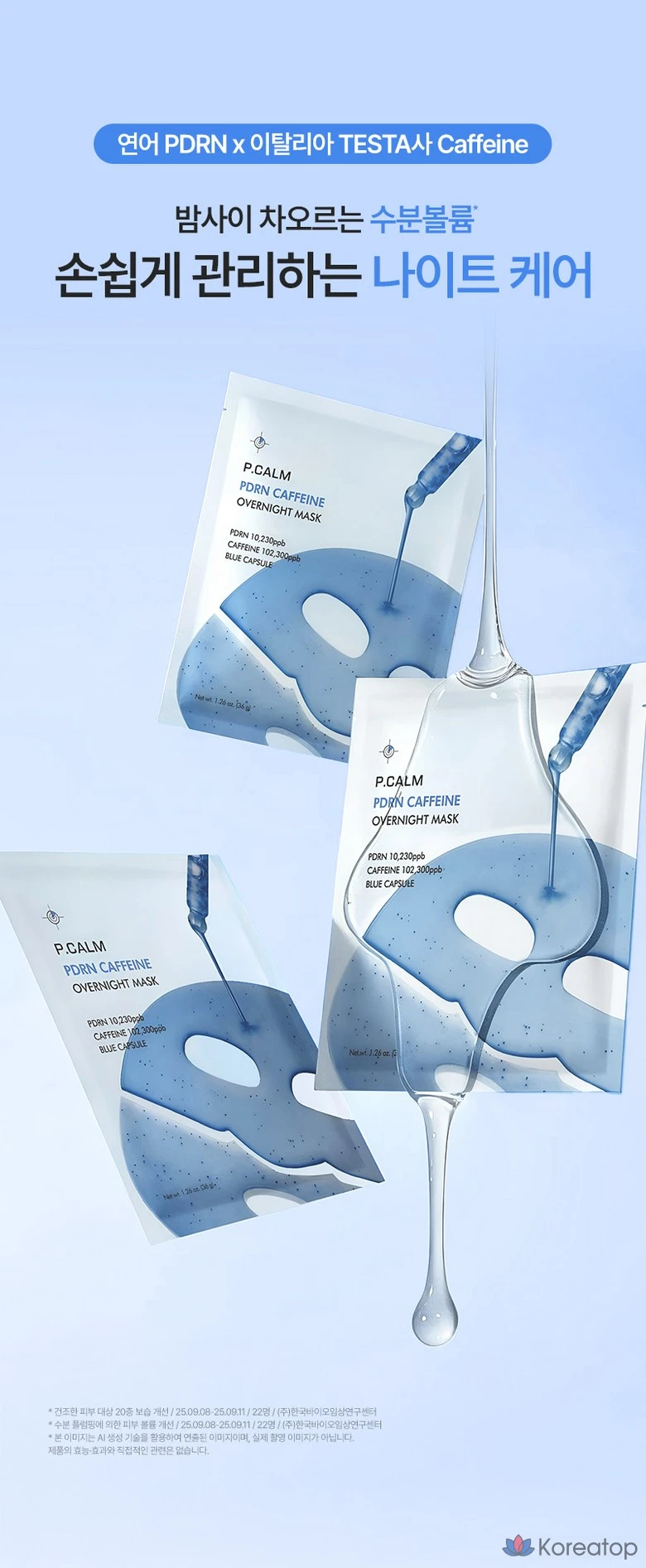 Ночная гелевая маска P.CALM PDRN с кофеином и гиалуроновой кислотой, 1 шт., упаковка из 4 штук.
