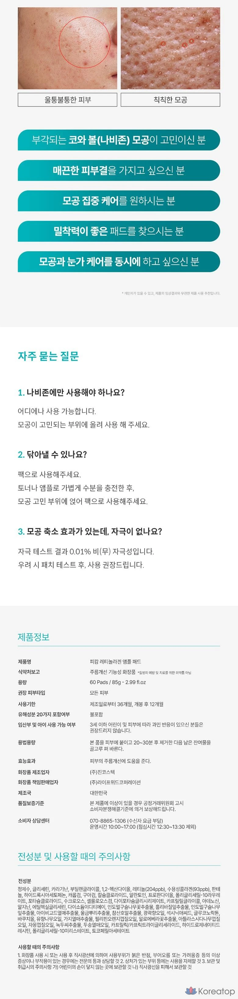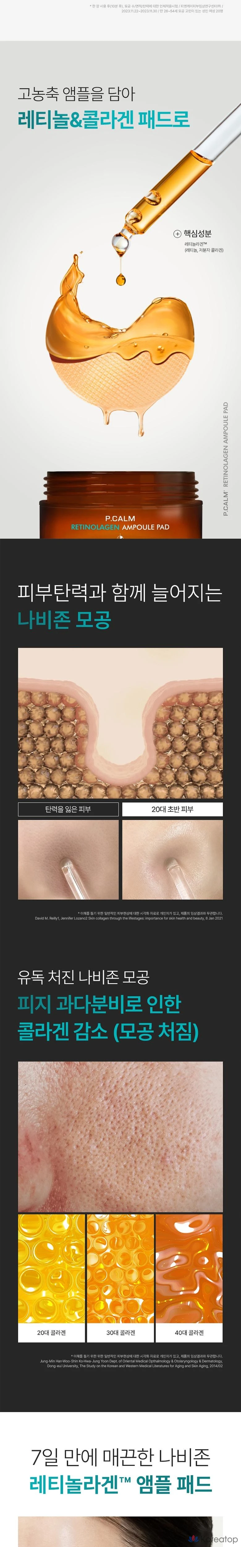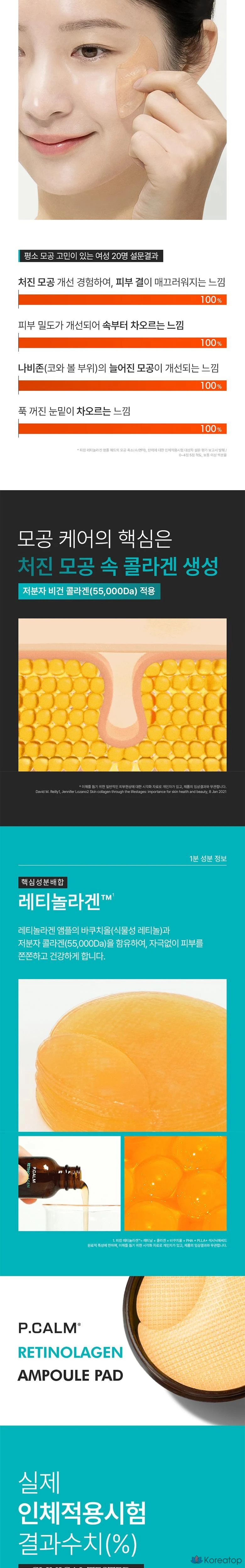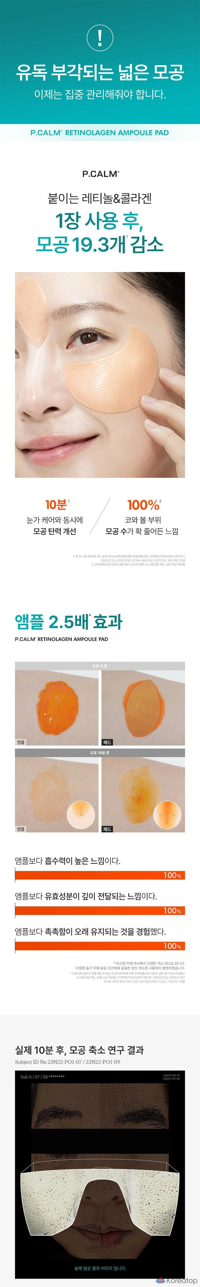 Салфетки для очищения глаз и пор P.CALM Retinol Collagen Ampoule, 1 шт., 60 штук