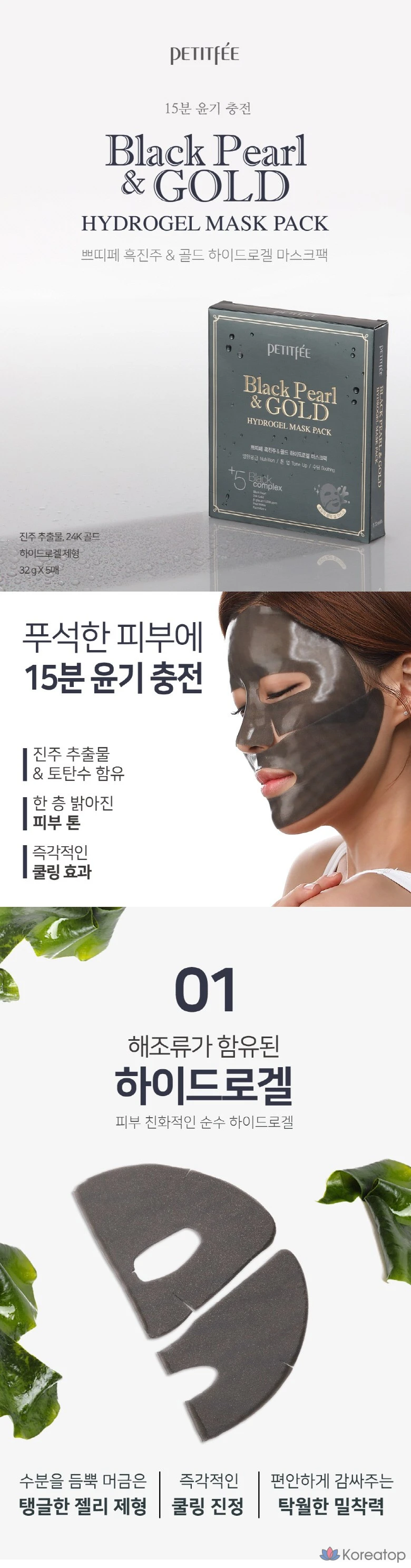 Набор гидрогелевых масок Petitfee Black Pearl & Gold, 32 г, 5 штук, 1 упаковка.