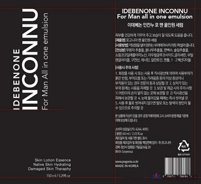 Incannnu Idebenone для мужчин, двухфункциональная эмульсия «все в одном» для разглаживания морщин и отбеливания кожи, 150 мл, 1 шт.