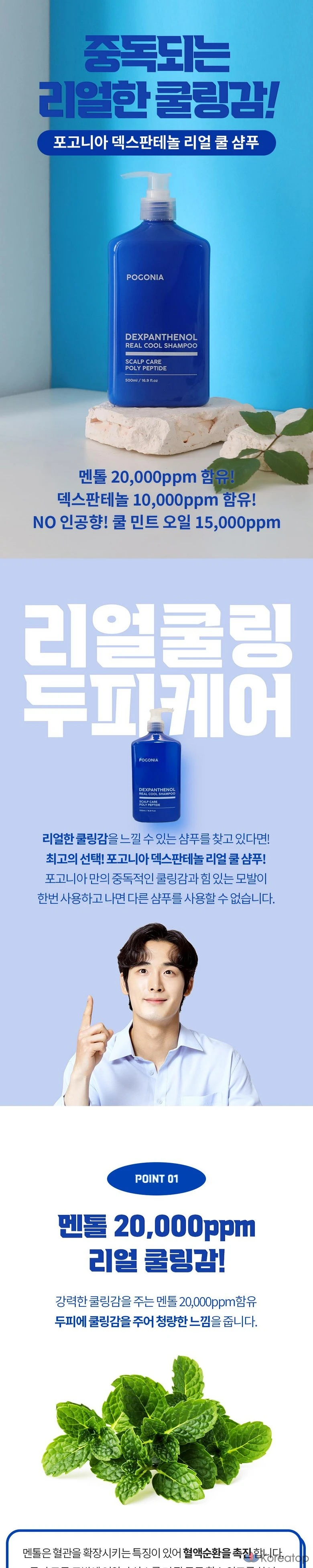 Освежающий шампунь Pogonia Dexpanthenol Real Cool без отдушек. Содержит 15 000 ppm масла охлаждающей мяты и 10 000 ppm декспантенола. 1 флакон, 500 мл.
