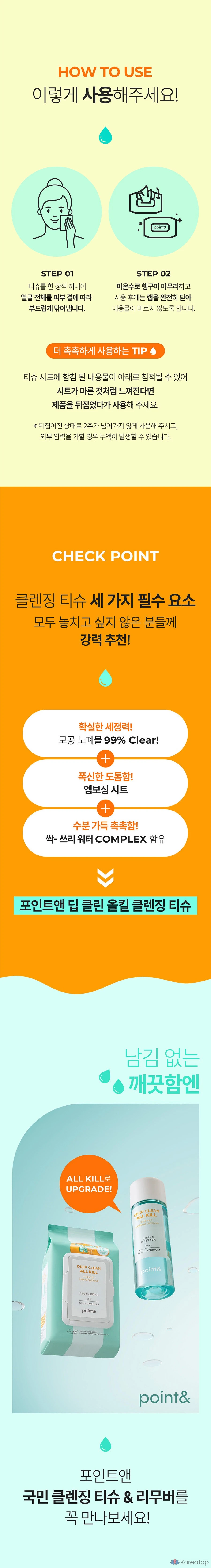 Очищающие салфетки Point& Deep Clean All-Kill, 80 листов, 1 упаковка