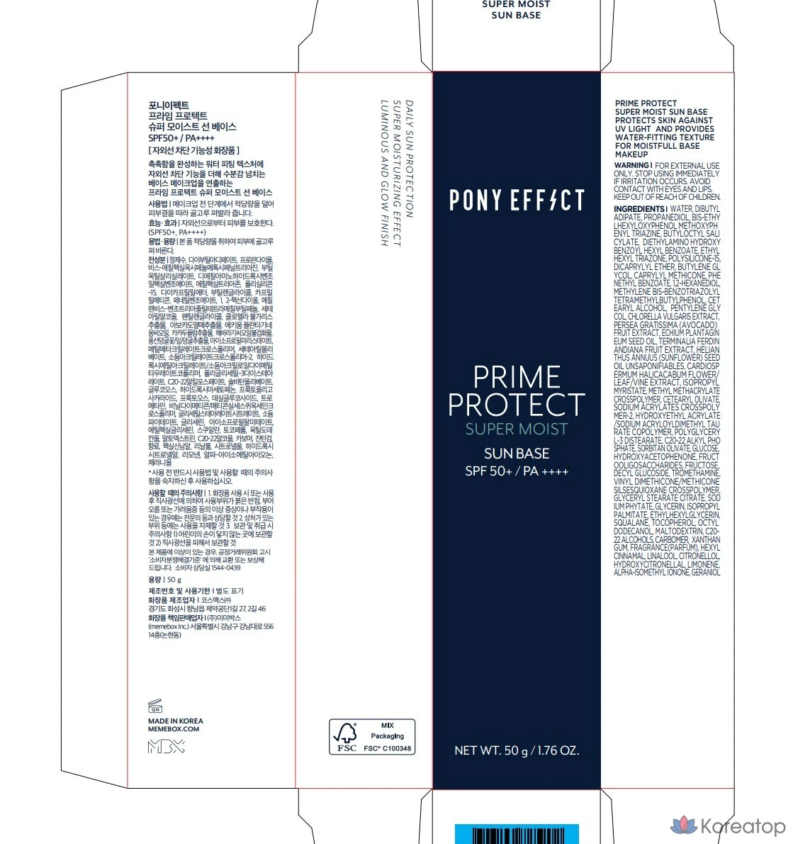 Солнцезащитный крем Pony Effect Prime Protect Super Moist Sunscreen SPF50+ PA++++, 50 г, 1 шт.