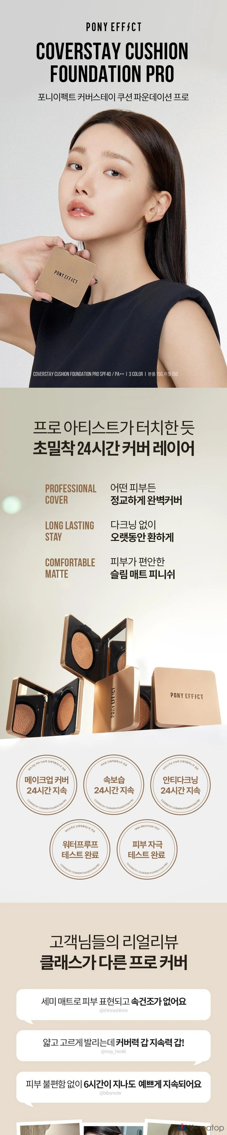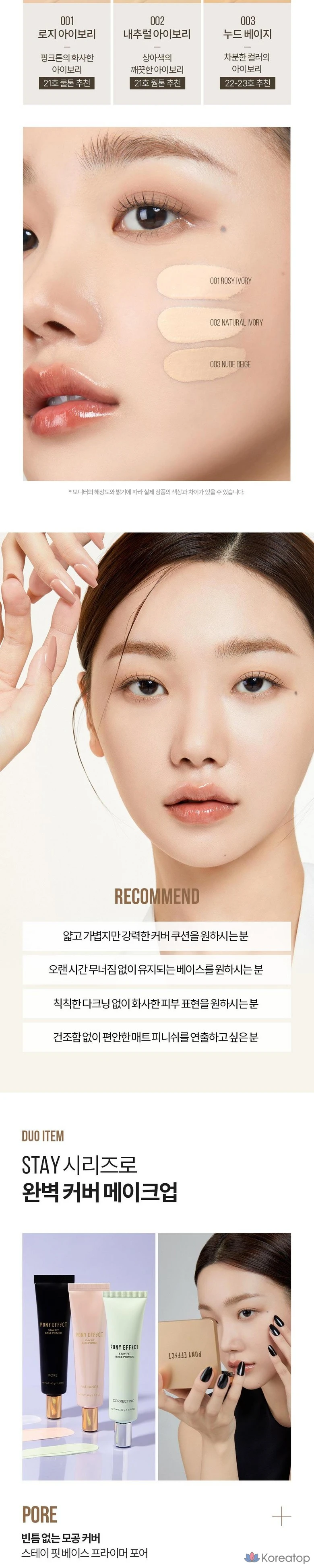 Тональный крем-кушон Pony Effect Coverstay Cushion Foundation PRO, 15 г, сменный блок 15 г, телесно-бежевый, 1 шт.