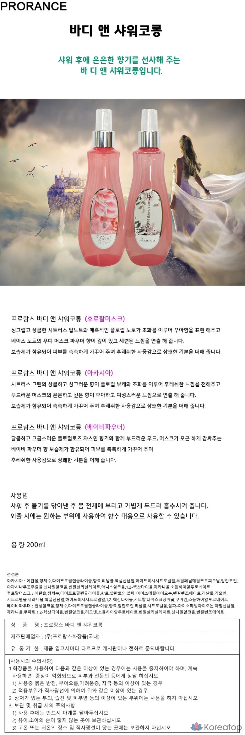 Парфюмированный одеколон для тела и душа Prorance (цветочный мускус), 200 мл, 1 шт.