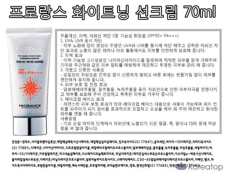 Солнцезащитный крем Prorance Whitening Sunscreen SPF50+ PA+++, 1 шт.