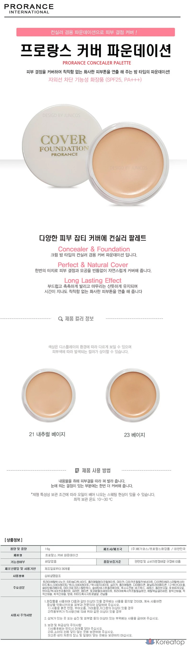 Тональный крем Prorance Cover Foundation, 16 г, № 21, оттенок Natural Beige, 1 шт.