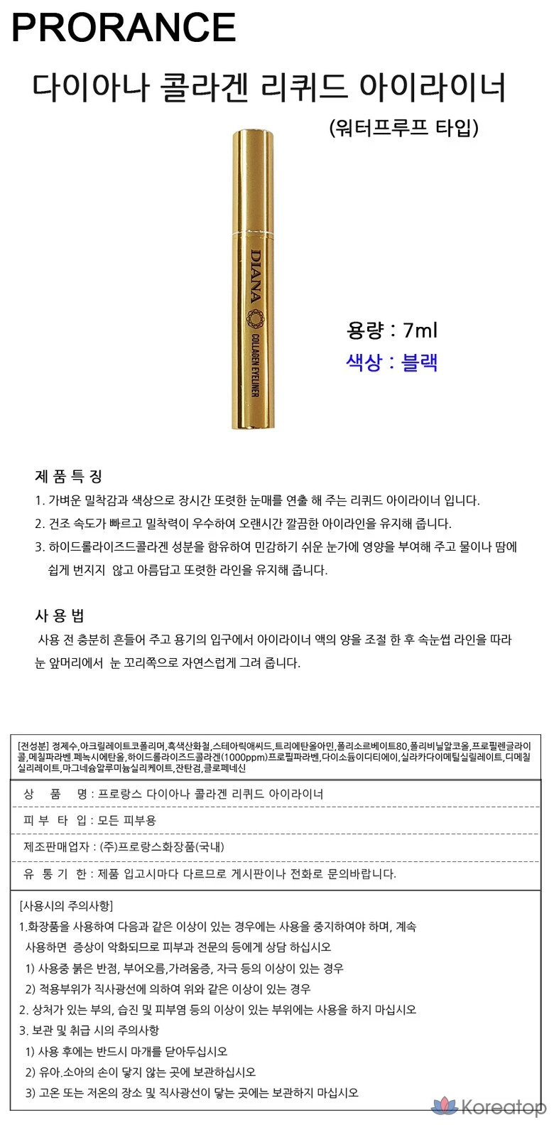 Жидкая подводка для глаз Prorance Diana Collagen, 7 мл, 1 шт.