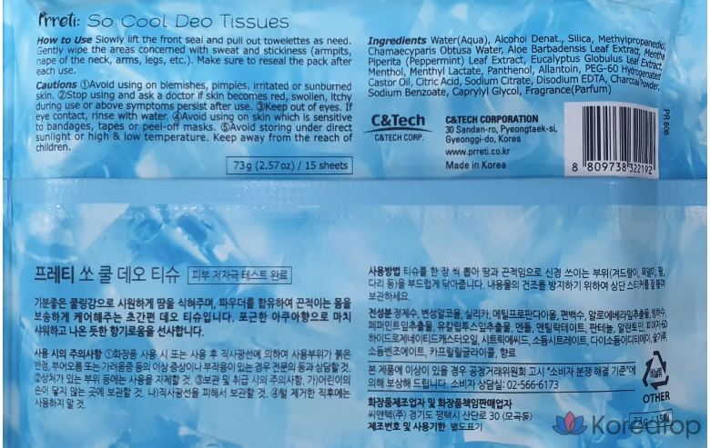 Дезодорант-салфетки Prreti So Cool, 1 упаковка, 15 штук.