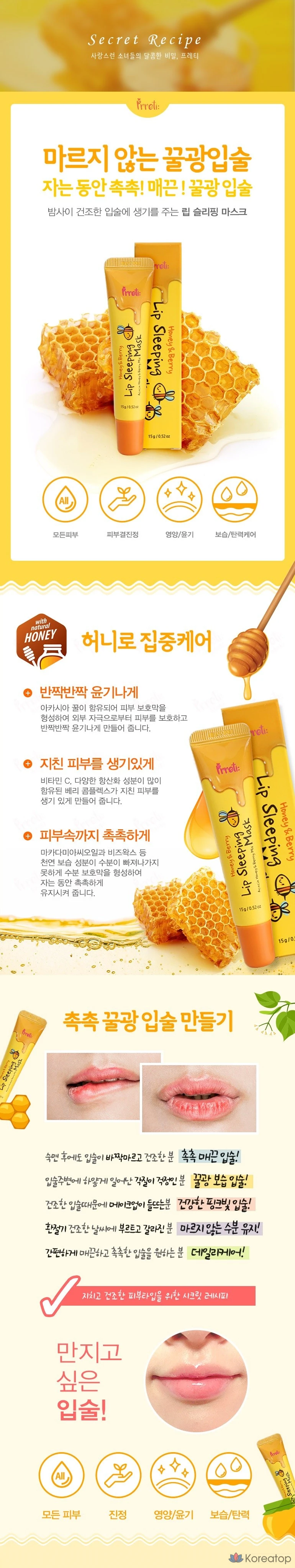 Набор ночных масок для губ Prreti Lip Sleeping Mask Pack, медово-ягодный, 15 г, 2 шт.