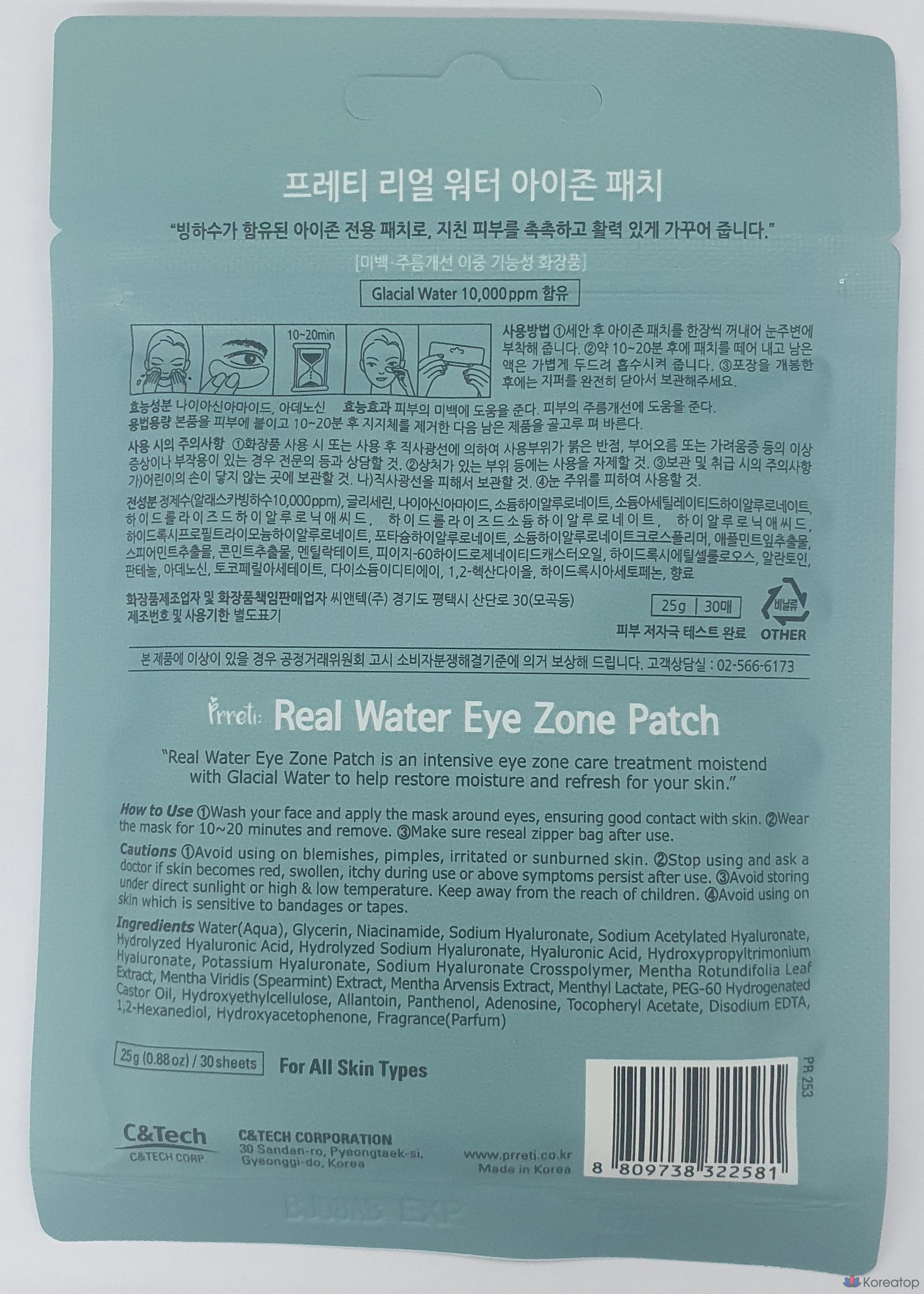 Патчи для глаз Prreti Real Water Eye Zone, 25 г, 1 упаковка, 30 штук.
