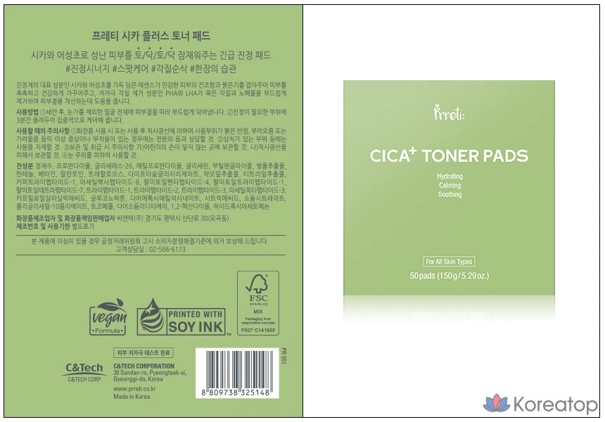 Тоник-подушечки Prreti Cica Plus, 150 г, 50 листов, 1 упаковка