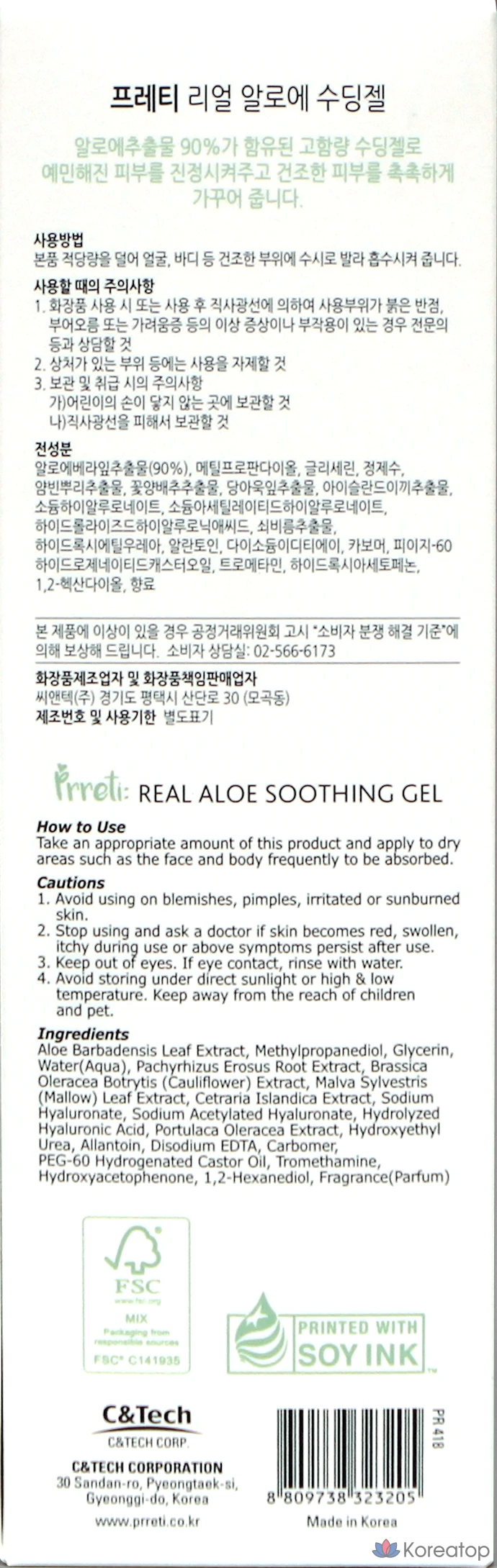 Успокаивающий гель с алоэ вера Prreti Real, 1 шт., 250 г
