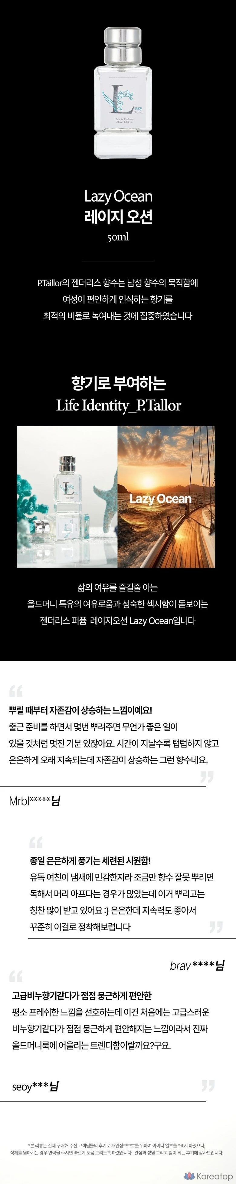 P.Tailor Lazy Ocean — это аромат, который переносит вас на побережье океана, где свежий бриз и соленый воздух создают атмосферу спокойствия и расслабления. Эти духи идеально подходят для повседневного использования, подчеркивая вашу индивидуальность и стиль. Благодаря натуральным ингредиентам, аромат остается на коже в течение всего дня, не теряя своей интенсивности. Элегантный флакон станет украшением вашей коллекции и подчеркнет ваш утонченный вкус. 🌊