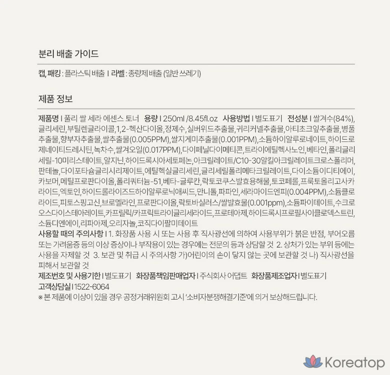 Увлажняющий барьерный тонер Pulley Rice Cera Essence Toner, 250 мл