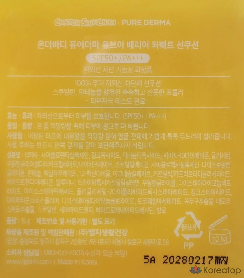 Солнцезащитный крем Pure Derma UV Barrier Perfect Sun Cushion Jjanggu SPF50+ PA+++ для тела, 15 мл, футляр, 1 шт.