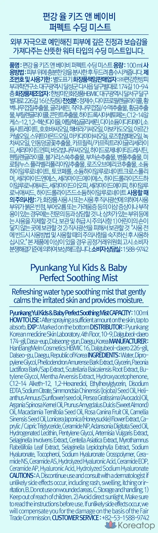 Успокаивающий спрей для детей и младенцев Pyunkang Yul Kids & Baby Perfect Soothing Mist, 100 мл, 1 шт.