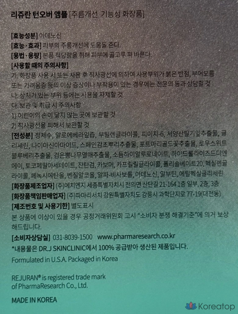 Rejuran Healer Ampoule — функциональная косметика для разглаживания морщин. REJURAN TURNOVER AMPOULE, 30 мл, 1 шт.