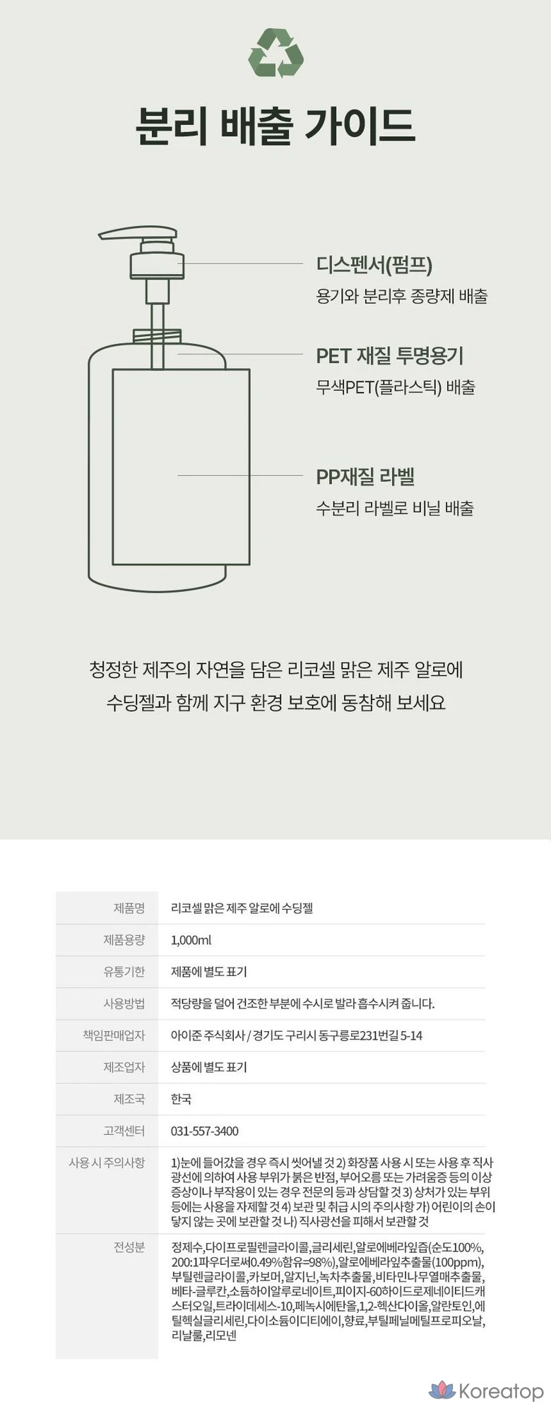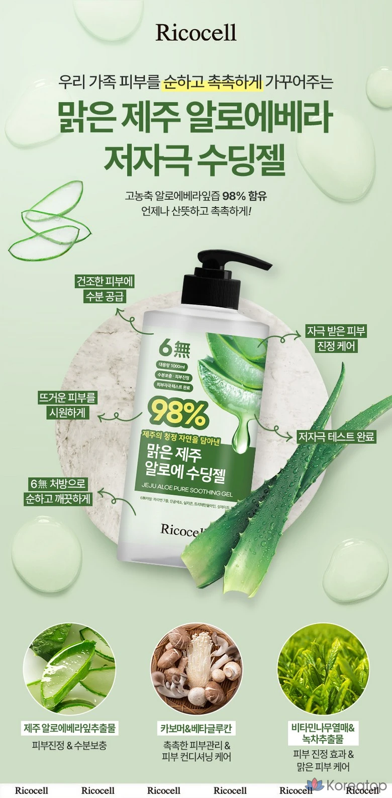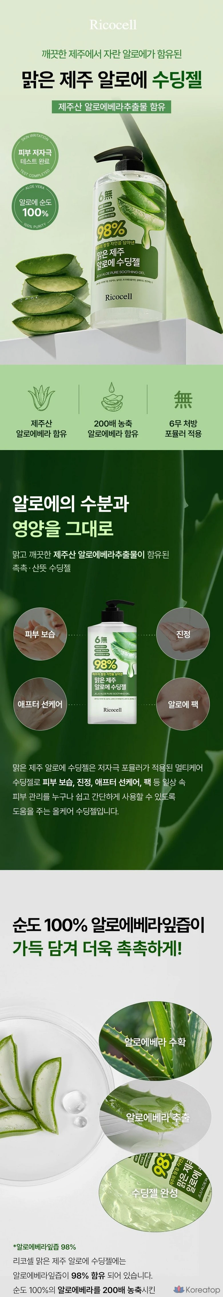 Гипоаллергенный успокаивающий гель Ricocell с алоэ вера (98%), 1 л.