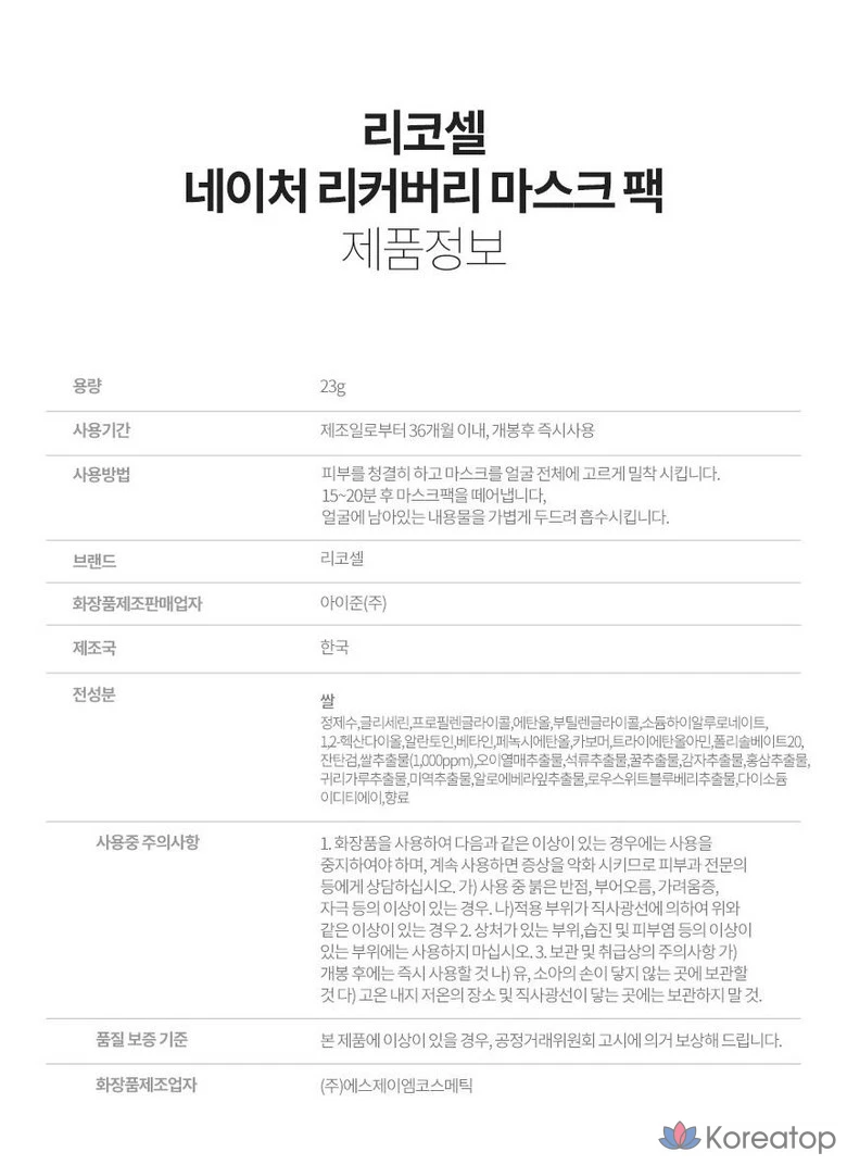 Набор из 10 картофельных масок Ricocell Nature Recovery, 23 г.