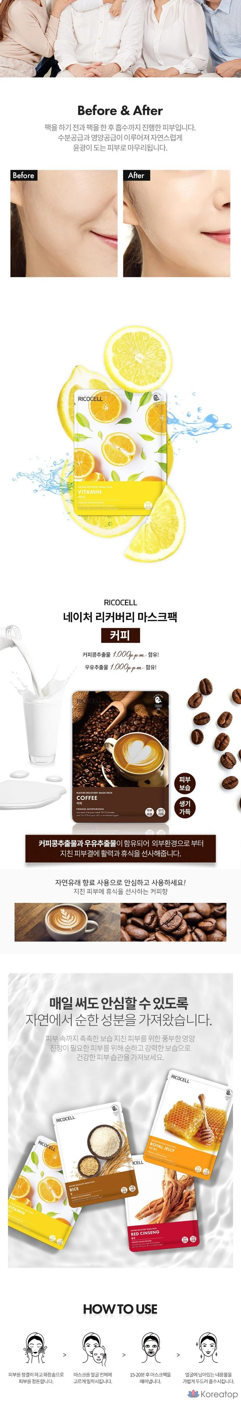 Набор кофейных масок для лица Ricocell Nature Recovery, 23 г, 10 штук, 1 упаковка.
