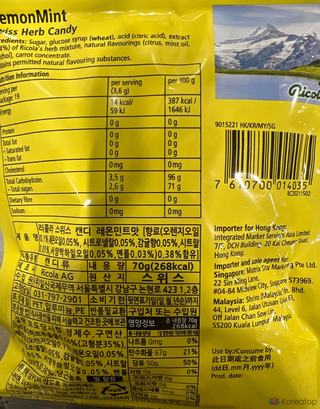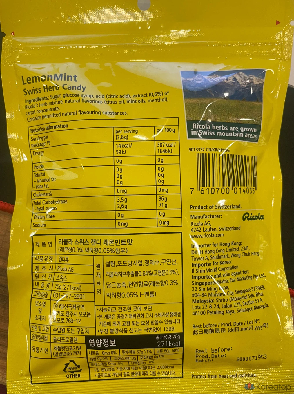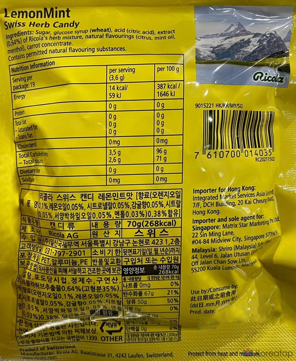 Леденцы Ricola Swiss Lemon Mint Herb, 70 г