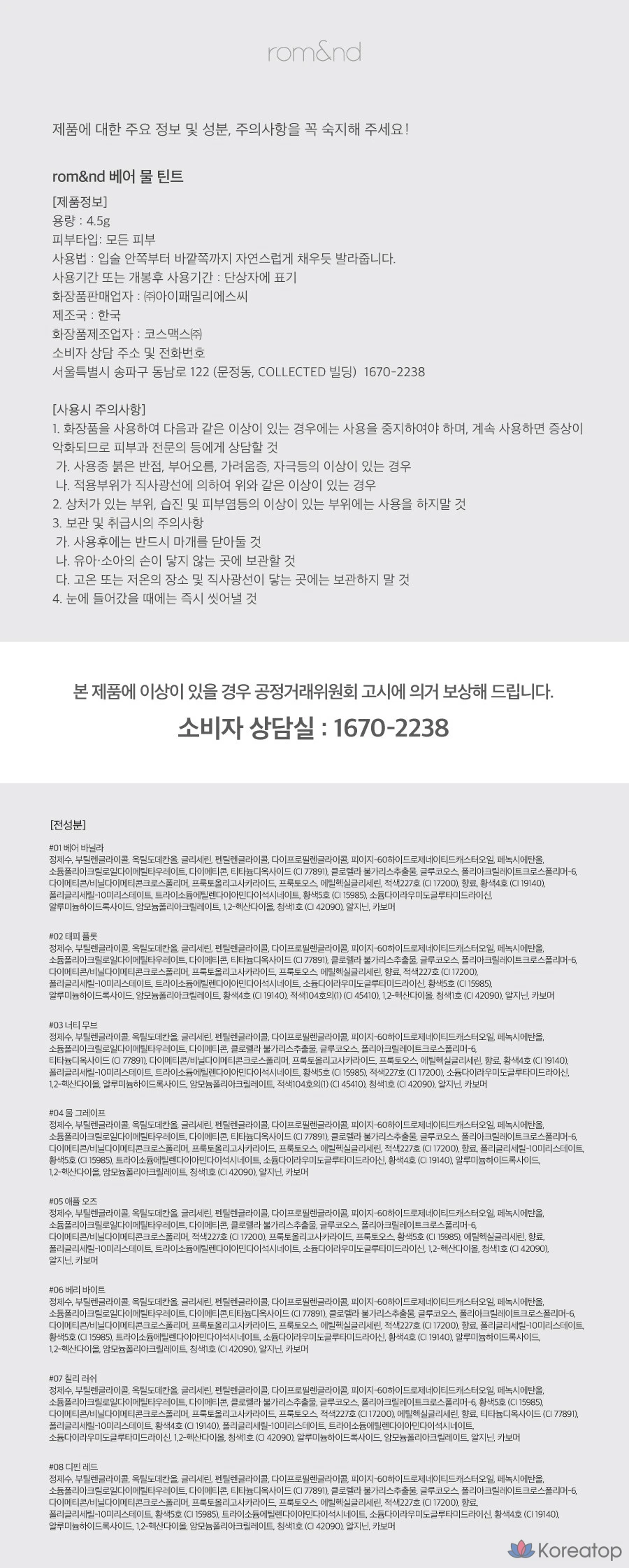 Rom&nd Bare Water Tint, 1 шт., 4,5 г, 01 Bare Vanilla