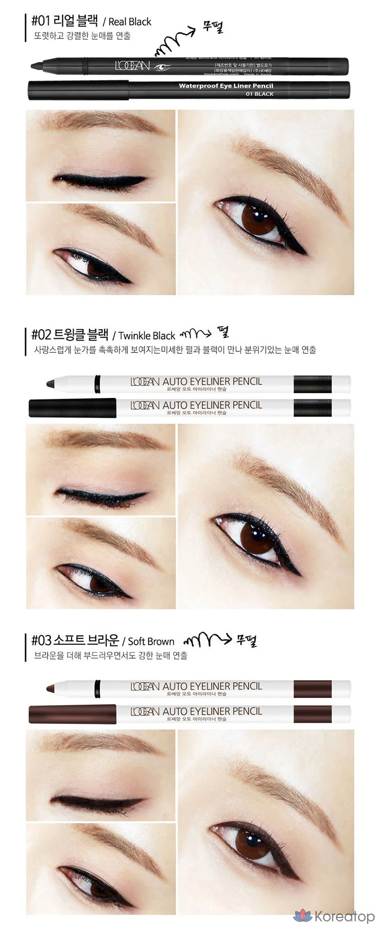 Гелевая подводка для глаз L'OCEAN Airtight Auto Gel Eyeliner, № 01, насыщенный черный цвет, 1 шт.