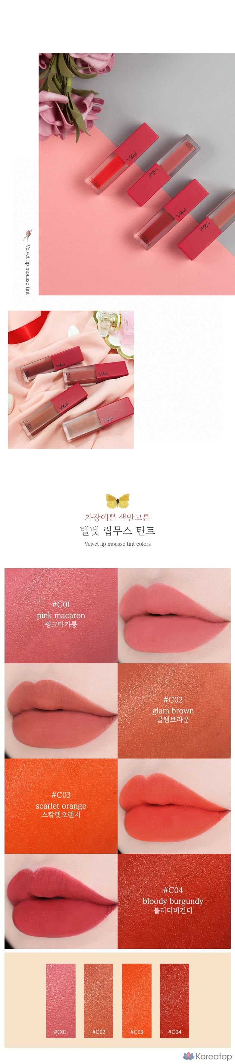Тинт для губ L'OCEAN Velvet Lip Mousse, C04 Кроваво-бордовый, 1 шт.