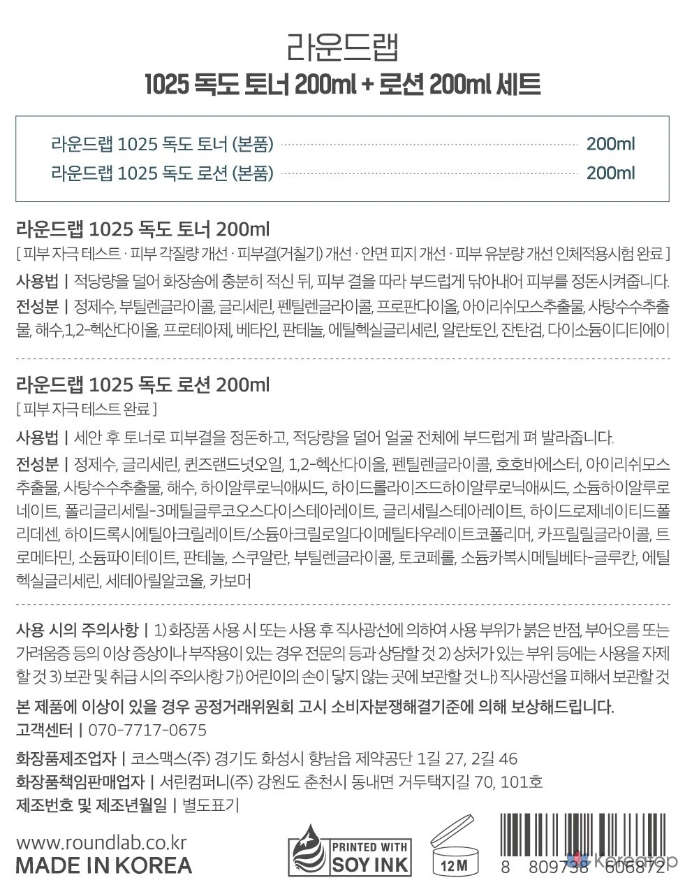 Увлажняющий набор для лица Dokdo Toner 200 мл + лосьон 200 мл, 1 комплект