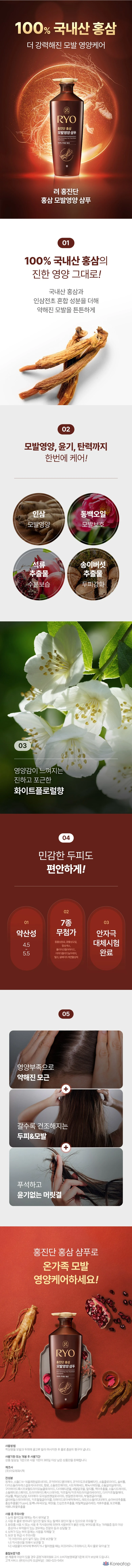 Питательный шампунь для волос Ryo Hongjindan с красным женьшенем и ароматом белых цветов, 820 мл, 1 шт.