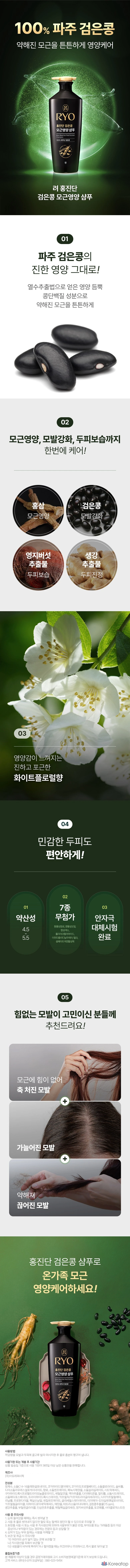 Питательный шампунь Ryo Hongjindan с экстрактом корня черной фасоли, 820 мл, 1 шт.