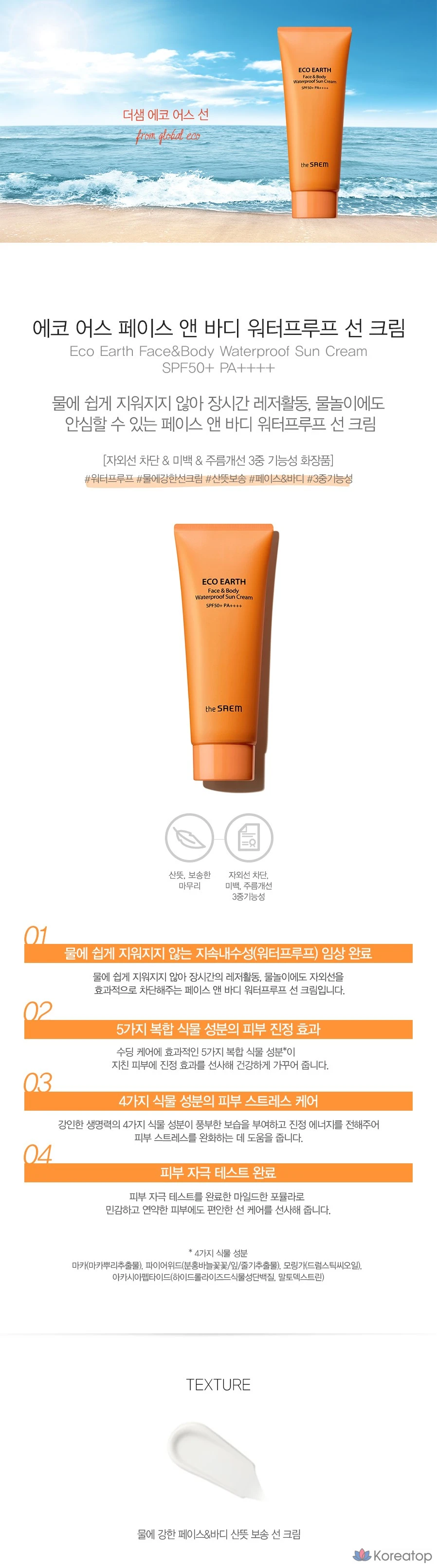 Солнцезащитный крем для лица и тела Saem Eco Earth водостойкий SPF50+ PA++++