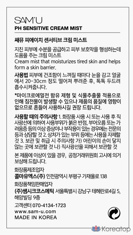 Крем-спрей для чувствительной кожи Samyu PH Sensitive Cream Mist
