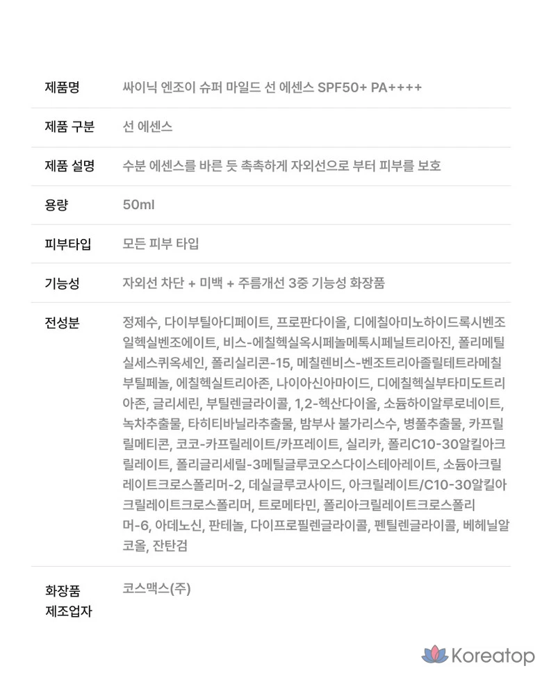 Солнцезащитная эссенция Scinic Enjoy Super Mild Sun Essence SPF50+ PA++++, 50 мл, 1 шт.