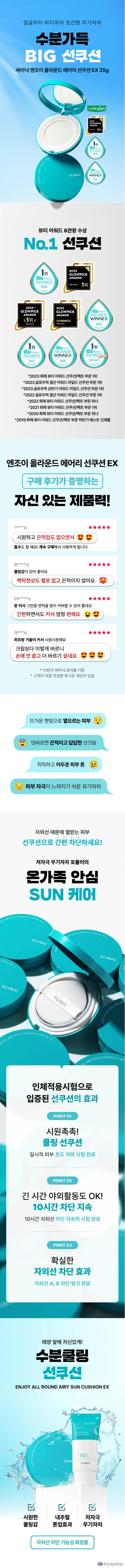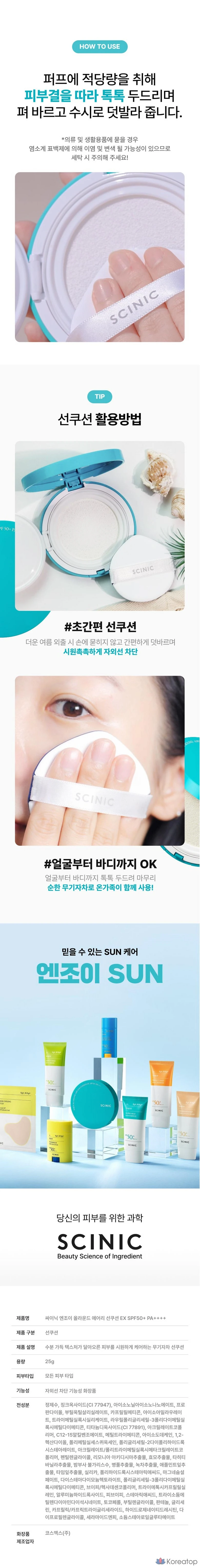 Солнцезащитный крем Scinic Enjoy All-Round Airy Sun Cushion EX SPF50+ PA++++, 25 г, 1 шт.