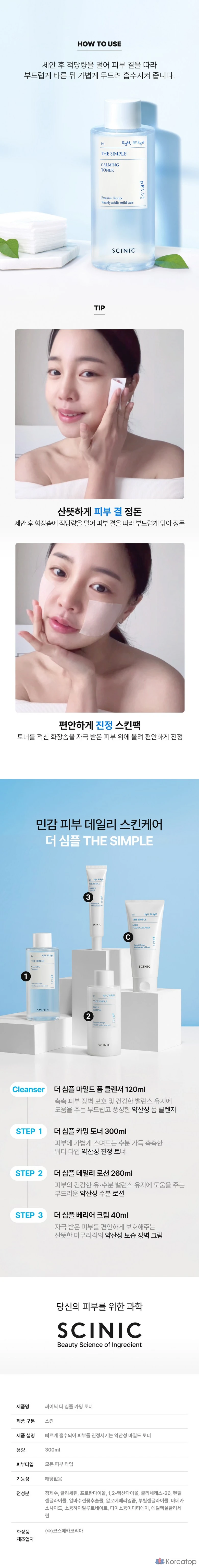 Тоник Scinic Simple 300 мл, Лосьон 260 мл