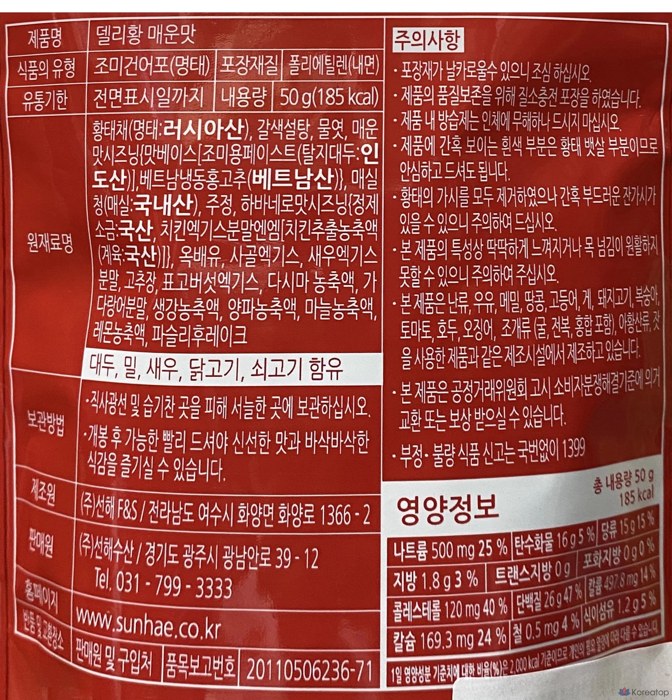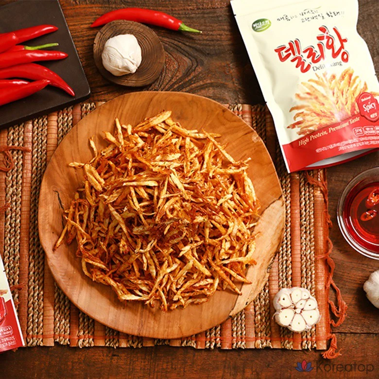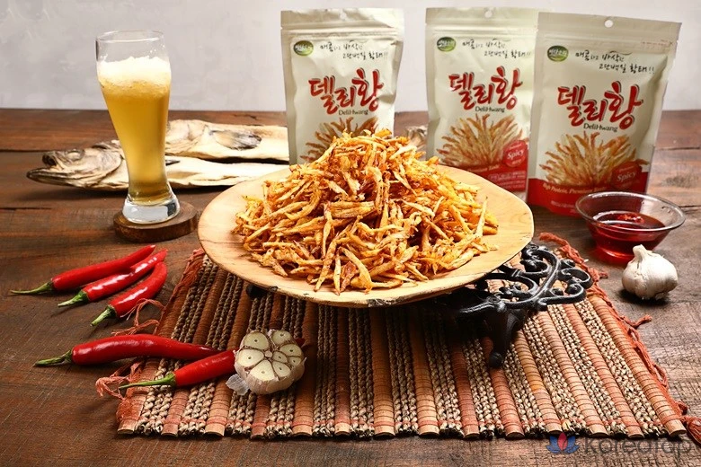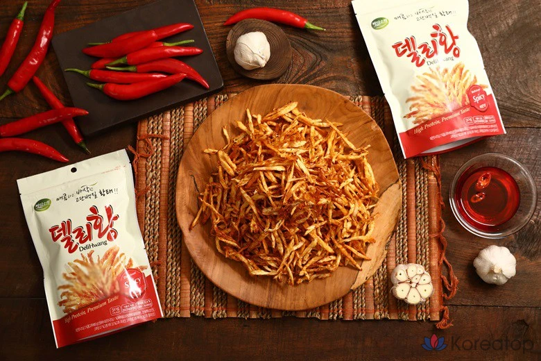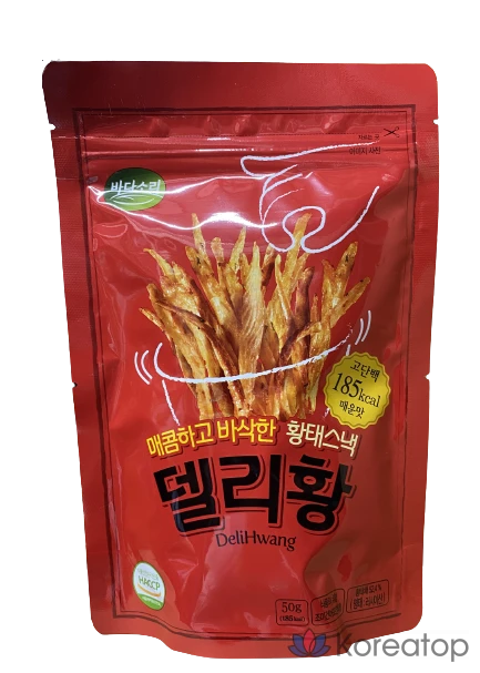 Эта острая закуска из сушеного минтая от Sea Sound Deli Hwang станет отличным дополнением к вашему столу. Продукт изготовлен из высококачественного минтая, который прошел тщательную сушку и приправлен специями для создания насыщенного вкуса. Удобная упаковка позволяет брать закуску с собой в дорогу или на пикник. Наслаждайтесь натуральным вкусом и ароматом, который подарит вам это уникальное блюдо. Идеально подходит для любителей острых ощущений и морепродуктов. 🌶️🐟