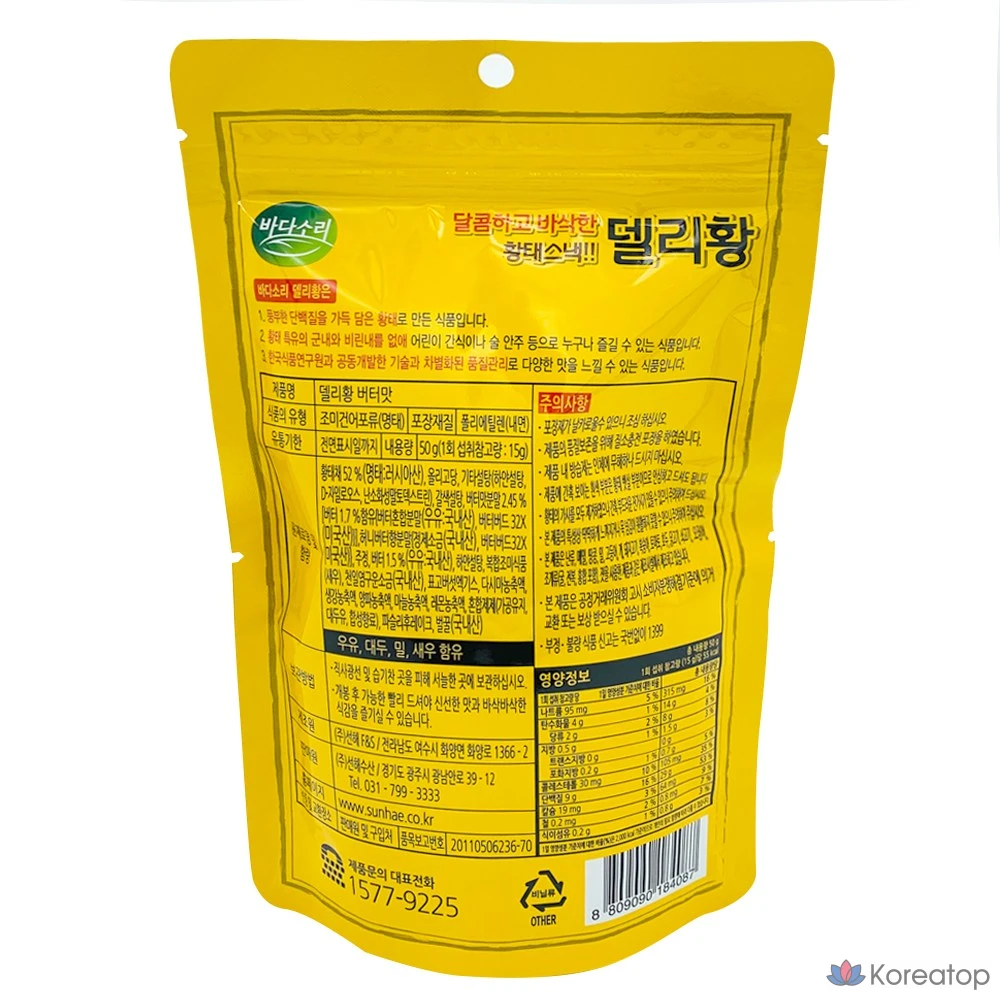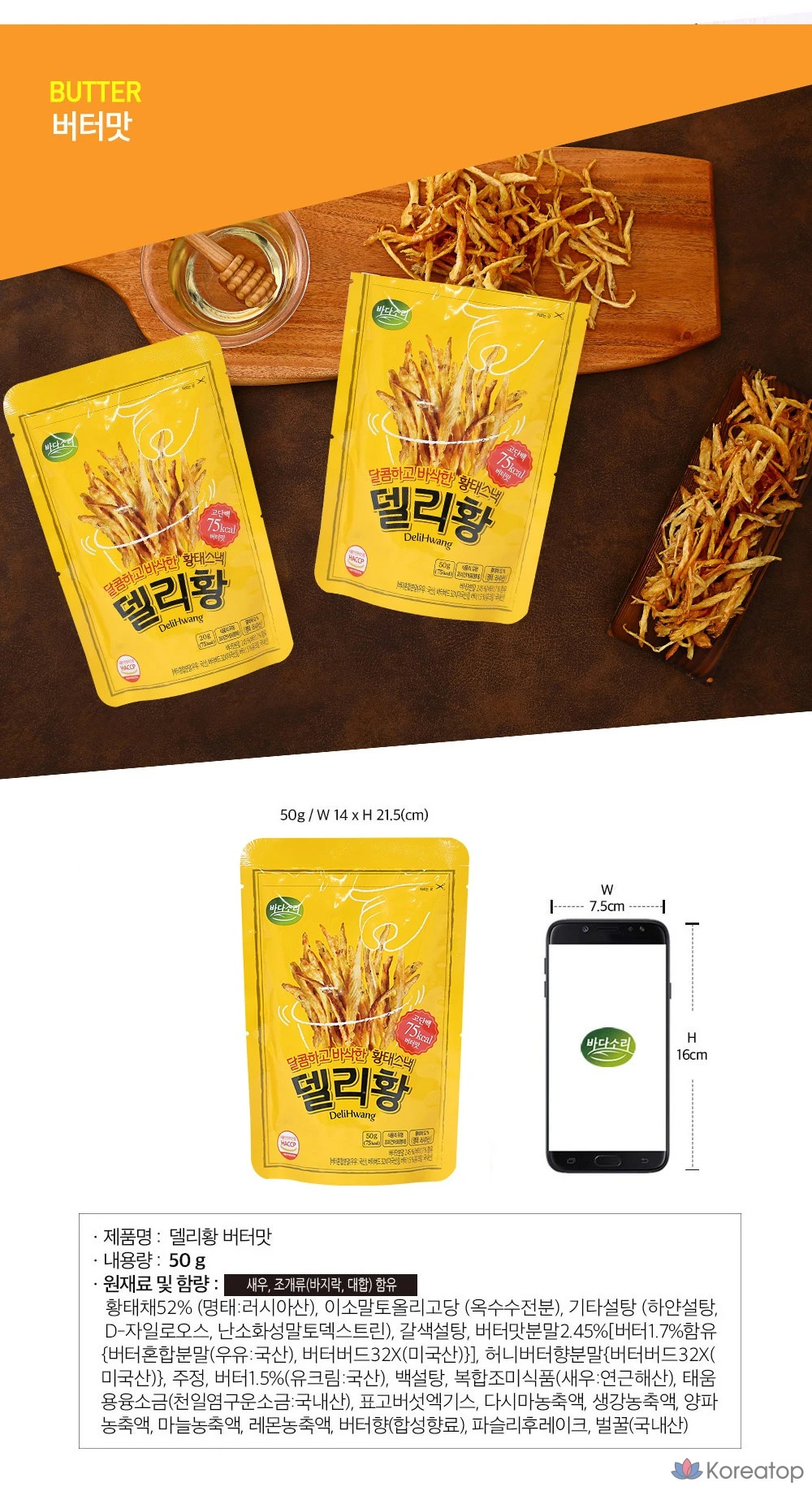 Вяленый минтай со вкусом сливочного масла от Sea Sound Deli Hwang — это изысканное сочетание натурального вкуса рыбы и нежного сливочного масла. Этот продукт идеально подходит для легкого перекуса или дополнения к основным блюдам. Удобная упаковка позволяет брать его с собой в дорогу или на работу. Насладитесь уникальным вкусом и текстурой, которые подарят вам настоящее удовольствие от каждого кусочка. 🐟