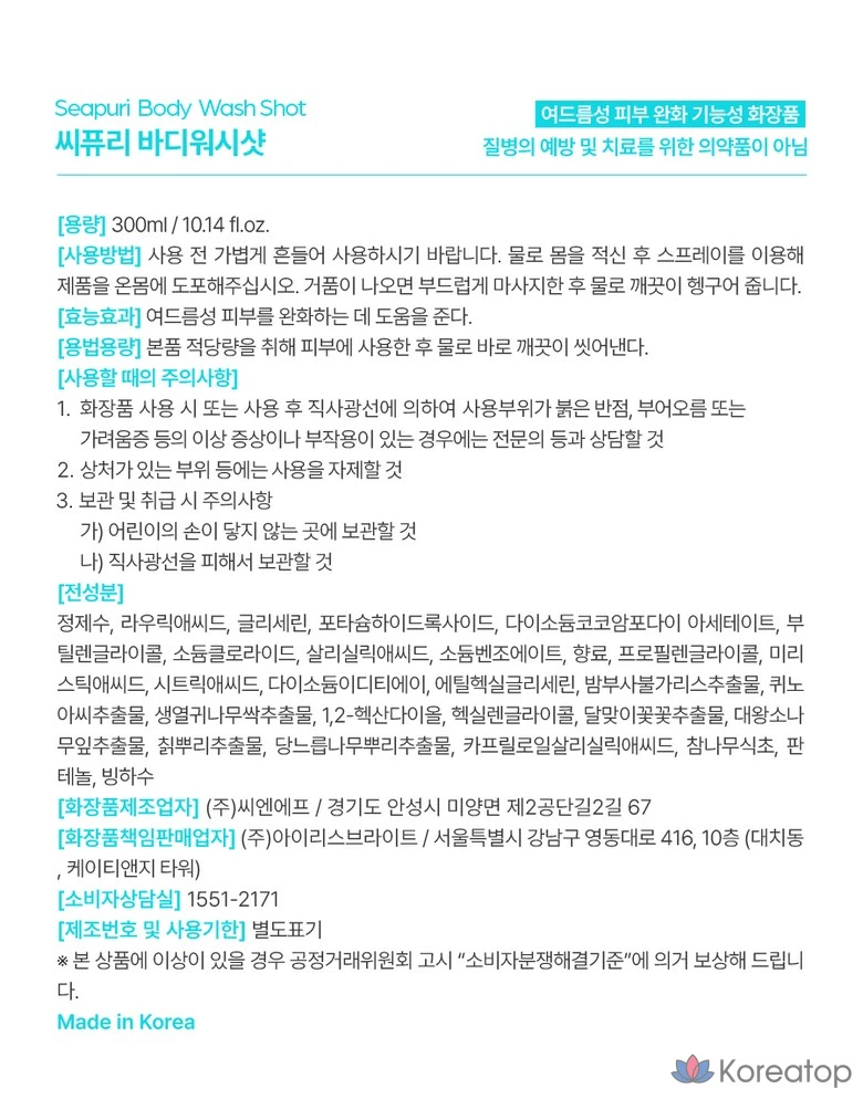 Гель для душа Seapuri Shot All-in-One, 1 шт., 300 мл