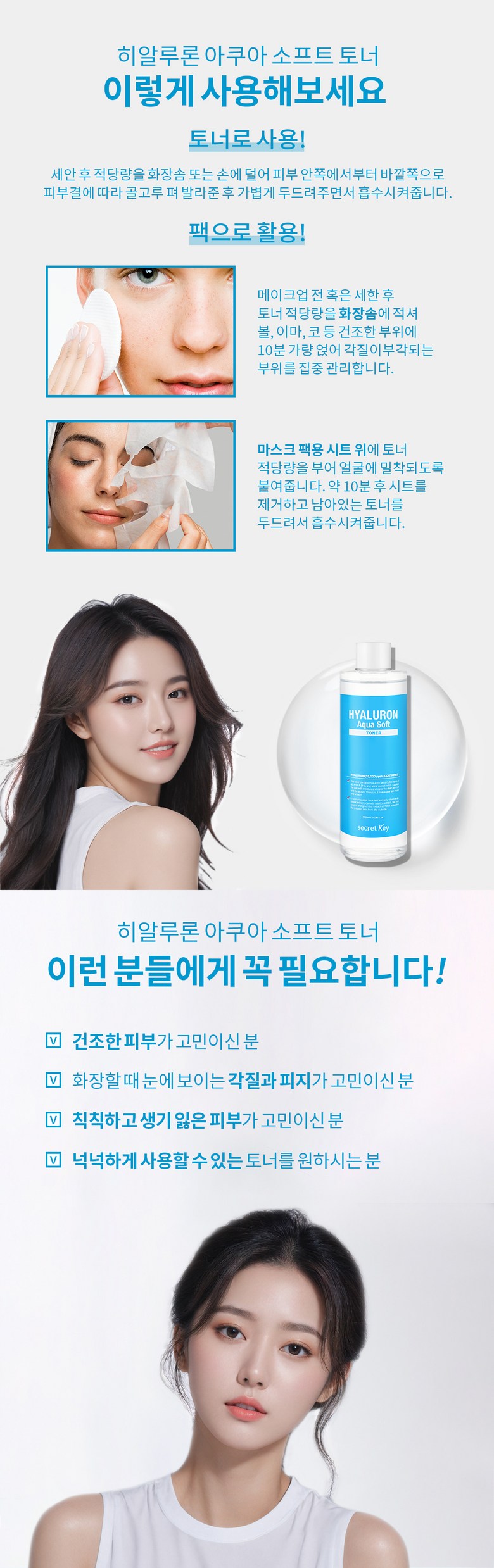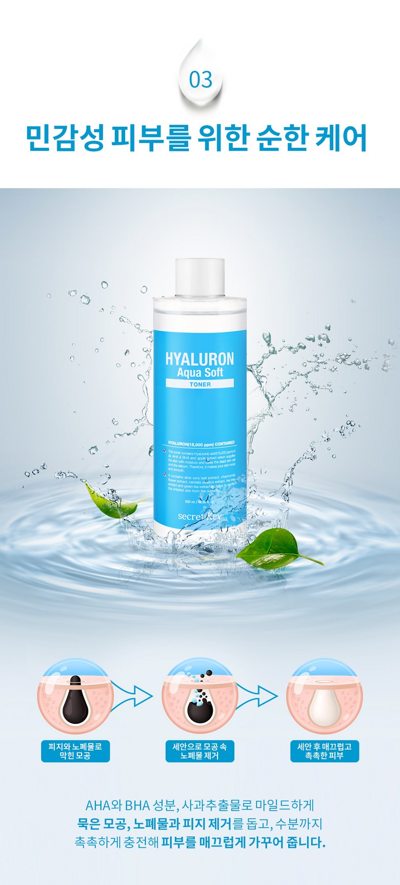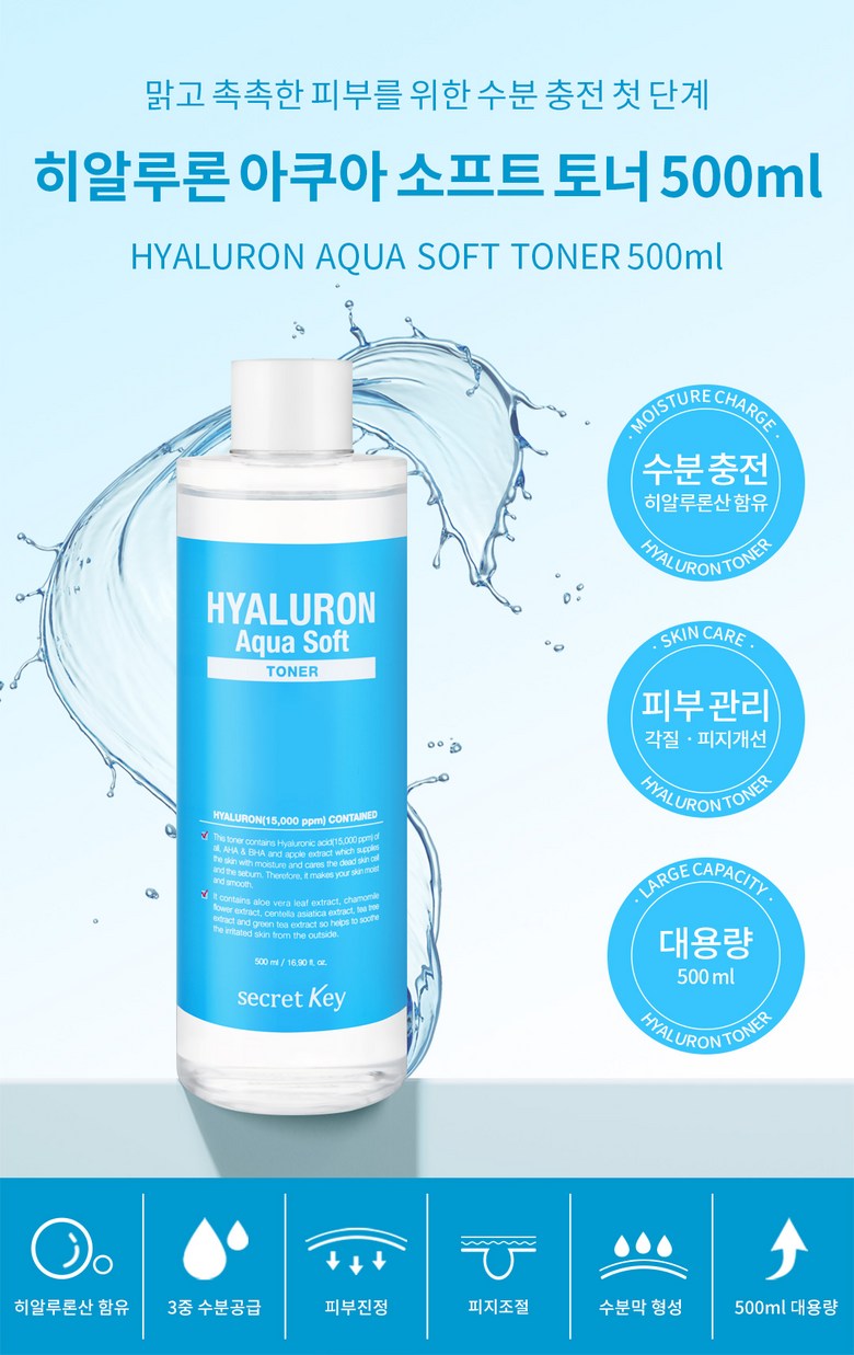 Тоник Secret Key Hyaluronic Aqua Soft, 500 мл, 1 шт.