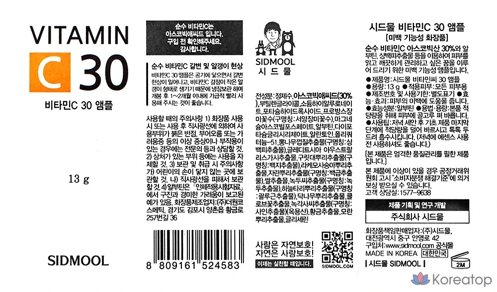 Ампула Sidmool с витамином С 30 для осветления пигментных пятен, 13 г, 1 шт.