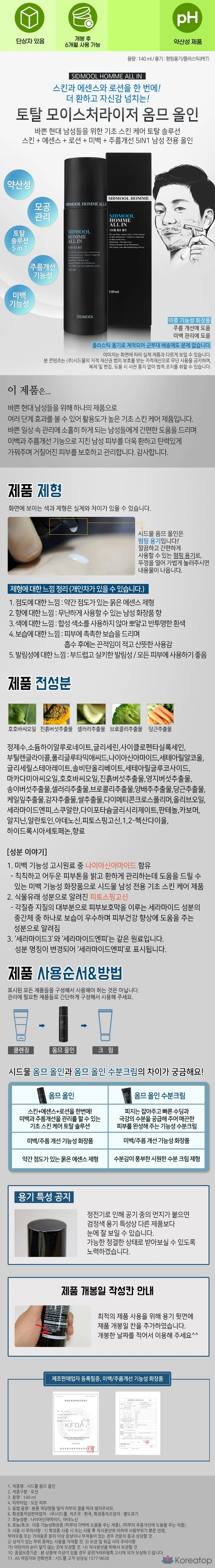 Увлажняющий крем Sidmool Total Moisturizer Homme All-in, 140 мл, 1 шт.