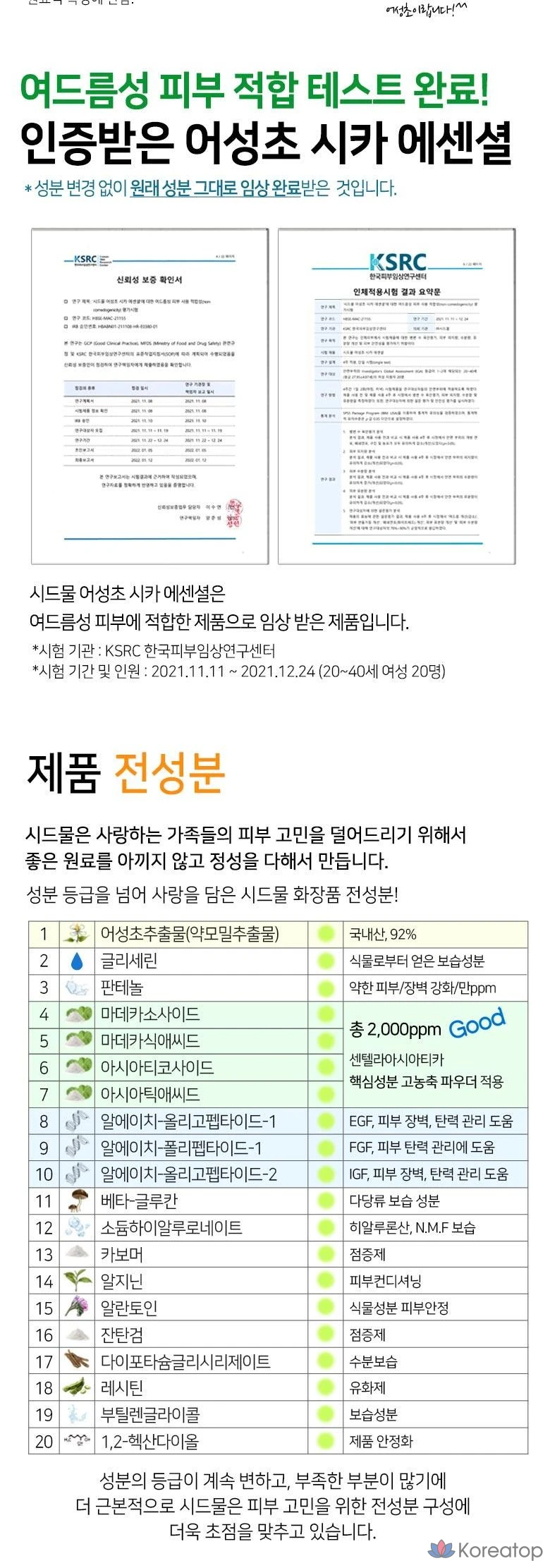 Эссенция Seedmul Eoseongcho Cica предназначена для глубокого увлажнения и успокоения кожи. Благодаря экстракту центеллы азиатской, она помогает уменьшить покраснения и раздражения, делая кожу более мягкой и гладкой. Легкая текстура быстро впитывается, не оставляя липкости, что делает ее идеальной для ежедневного использования. Подходит для всех типов кожи, особенно для чувствительной и склонной к раздражениям. 🌿